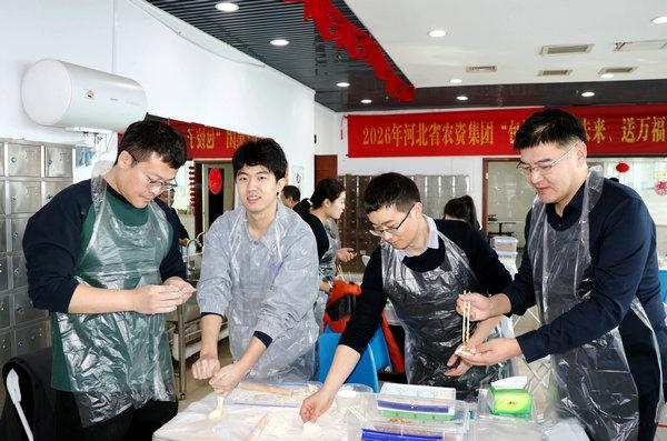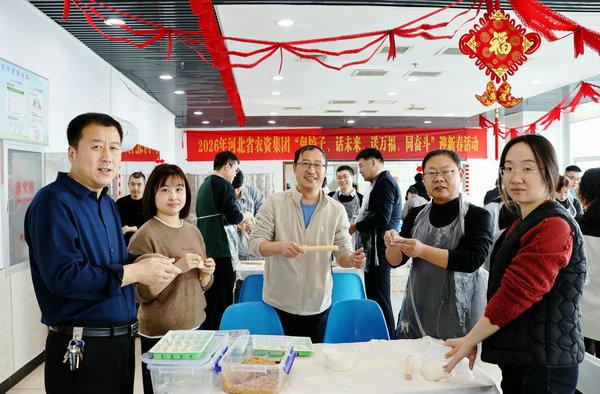在河北農資大廈職工食堂內,每張桌子上面團、餃子餡和工具早已擺放就緒,大家圍在一起共同包餃子。各部門積極參與,分工明確,紛紛秀出自己的絕活,不一會兒各式各樣的餃子就出現在托盤中,“年味兒”瞬間撲面而來。餃子雖小,情誼至深,大家把歡樂、希望和祝福一同包進餃子中。大家圍坐在一起吃著熱氣騰騰的餃子,暢談2025年工作收獲,暢想2026年工作愿望。